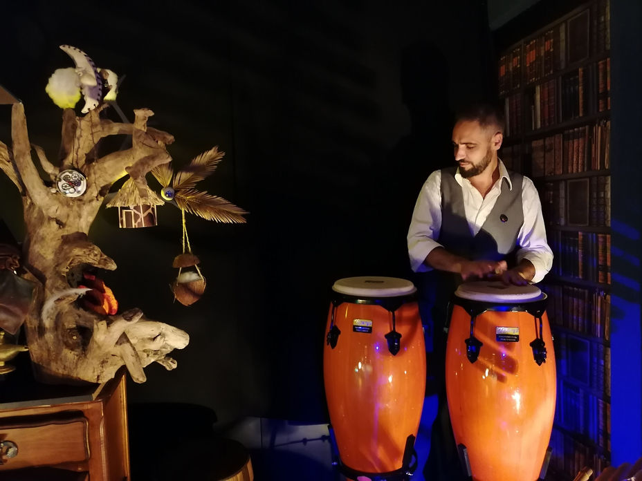 Utilisation d'une dizaine d'instruments de musique du monde (congas, darbuka, rav vast, calebasses, cajon...